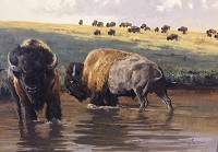 Ken is a wildlife artist, very hands on, traveling each year to view animals in natural habitat, studying animals behavior and capturing them in their full coat and prime physical condition. He observes them in various landscapes, light and weather. He has won awards and has had numerous exhibitions at major museums across the country, the National Museus of Wildlife Art, the Leigh Yawkey Woodson Museum, the Genessee Country Museum and the Glenbow Museum. His works are beautifully displayed in his book "From the Tundra to Texas" and featured in "Texas Brushstrokes". My familiy and I feel very fortunate to call Ken and Mary Lee our good friends. |